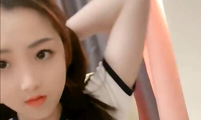While her big tits are caressed the ultra-cute Asian chick gets a