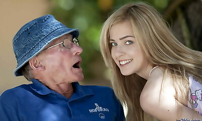 Beautiful teen deepthroats grandpa outdoors and she swallows it all