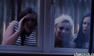 Classy cfnm femdom railed doggystyle in trio