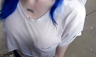 Punk Girlfriend Honey Blue Gives Sloppy Head In Abandoned Hall