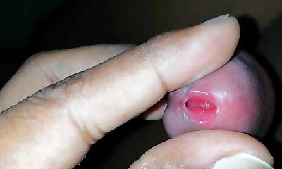 Urethral probing of a enormous dick completed with a cumshot on the Milf chest and armpit. Urethral penetration