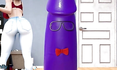 Slut Inserts Huge Cock-Shaped Dildos In Her Twat.