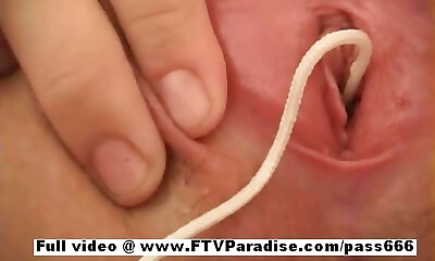 Urethral play with a bladder implement and a dilator with vibration. Close up sounding.