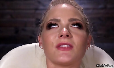 Sexy platinum-blonde Rain DeGrey getting dicks and machines while tied up
