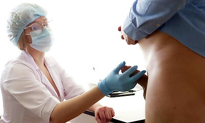 Huge-titted Medic milking the prostate. Stuck her finger up the ass
