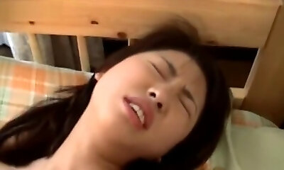 Taiwanese dark-haired teen cheerleader Xu Xiaoxin enjoys sex with a guy in bed.
