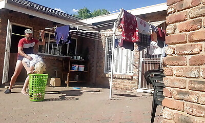 Step Son plumbed Step Mom while she is stuck in washing machine Giant Creampie Dad is not home