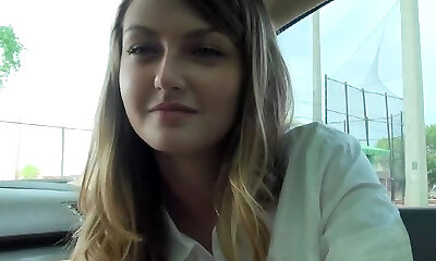Shy girl Hazel Moore is flashing knockers in the van in hot casting video