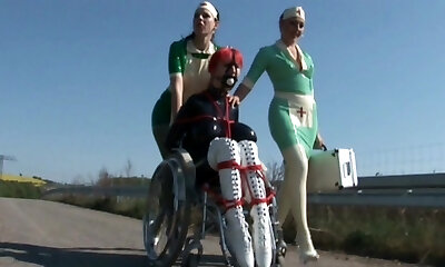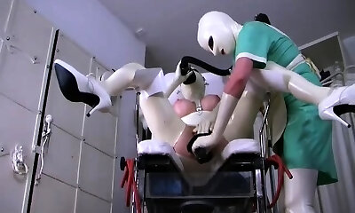 The poor patient suffers from a spandex allergy, also her can be helped in the clinic by the two protection nurses