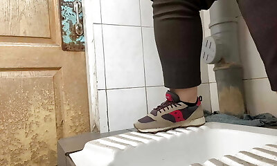 Caked with wet toilet paper bitch Akira Ichinose flashes her snatch