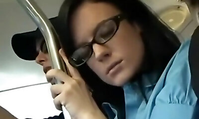 Busty, Asian brunette is getting molested in a public buss, but she likes it a lot
