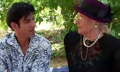 Grandma fucks and squirts outdoor